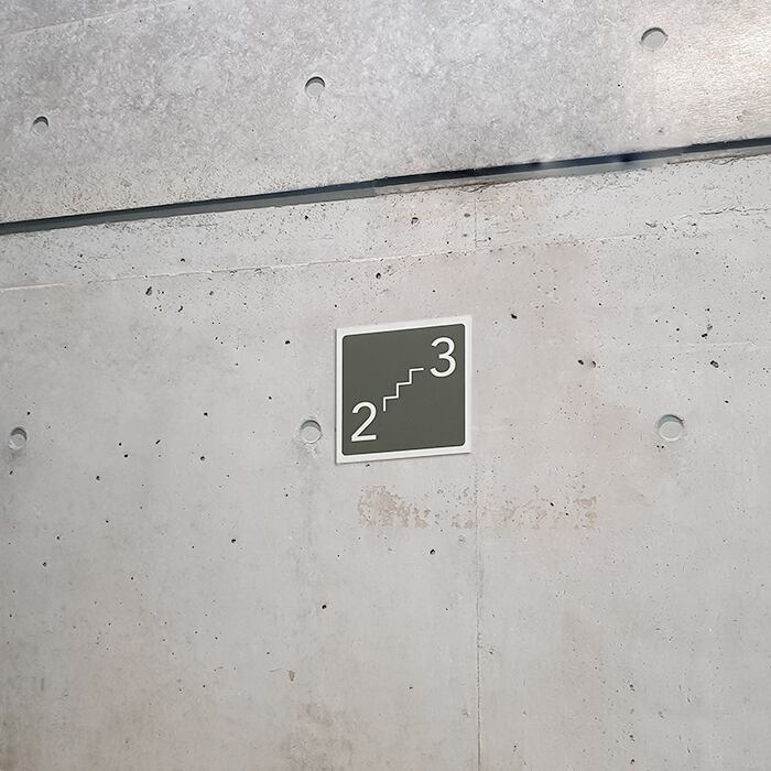 アルミ複合板製にシートが貼られた階数表示サインです。