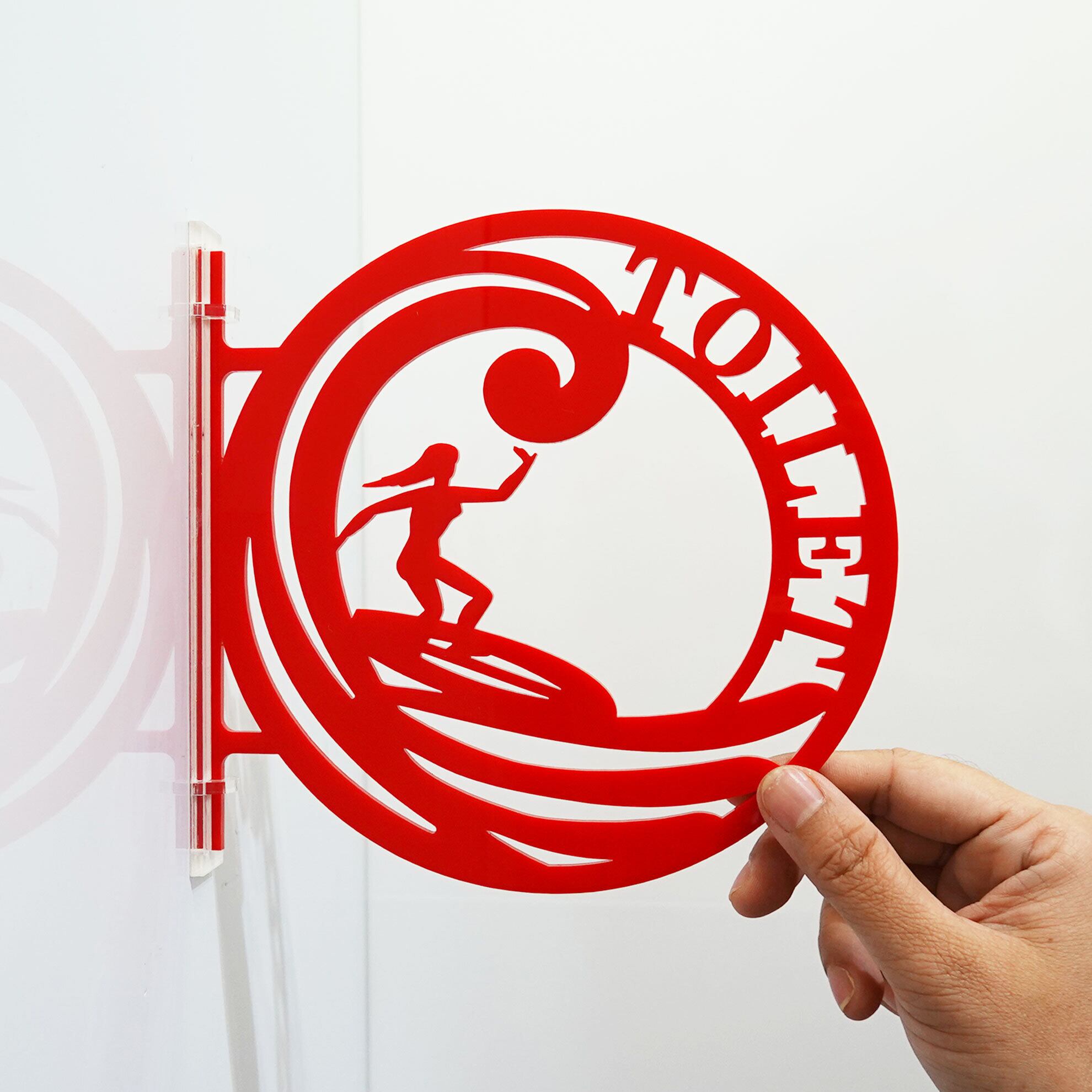 波乗りをモチーフにした、女子トイレの突き出しサインです。