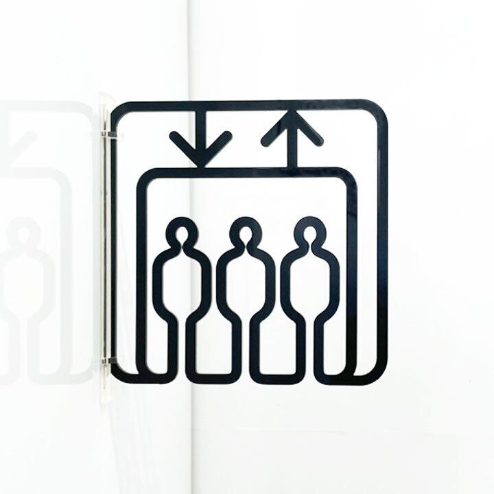 シンプルに一筆書きで表現したエレベーターサインです。