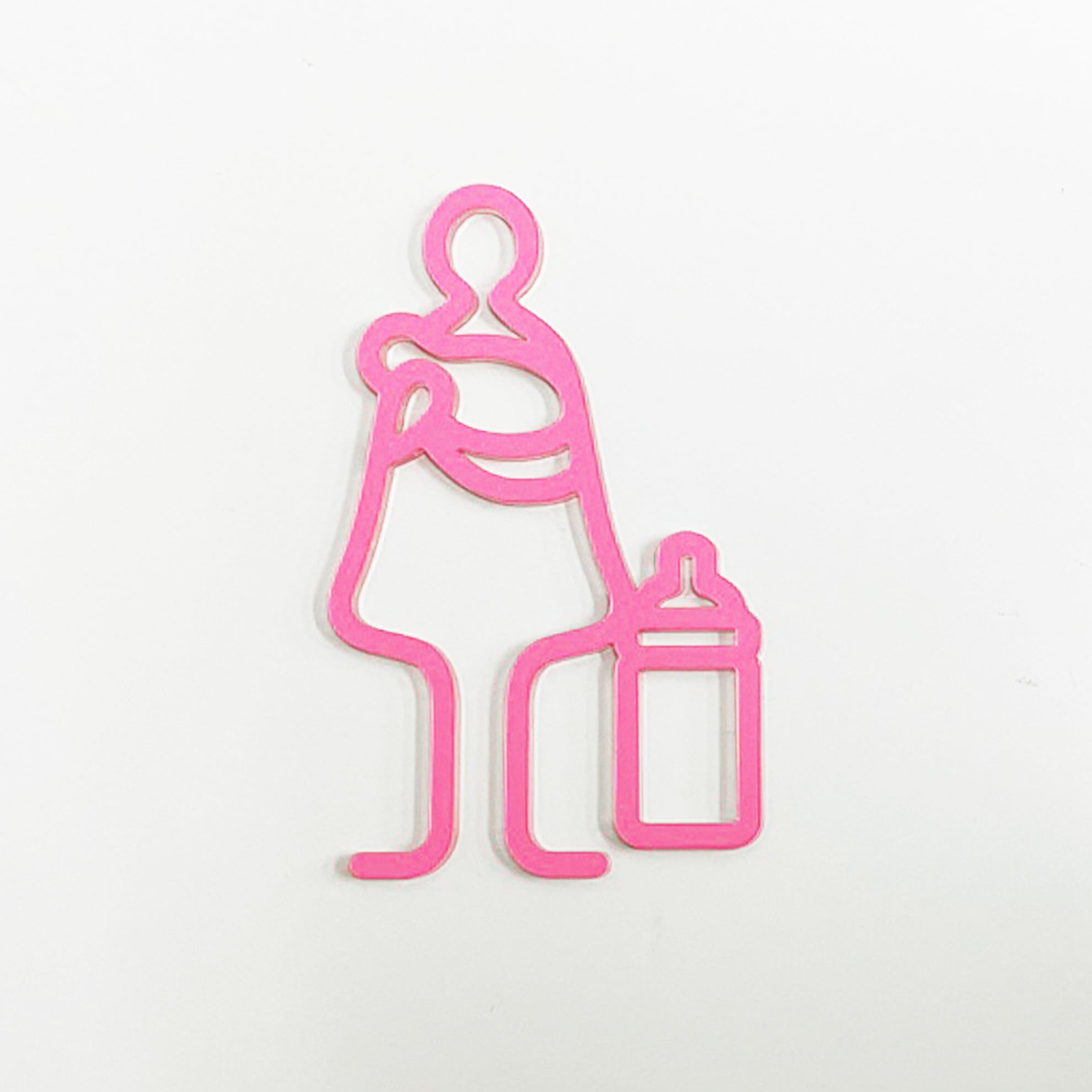 授乳室トイレピクト 壁付けサインです。透明アクリルにシートが貼られています。誰でも組立設置が簡単。両面テープ接着。