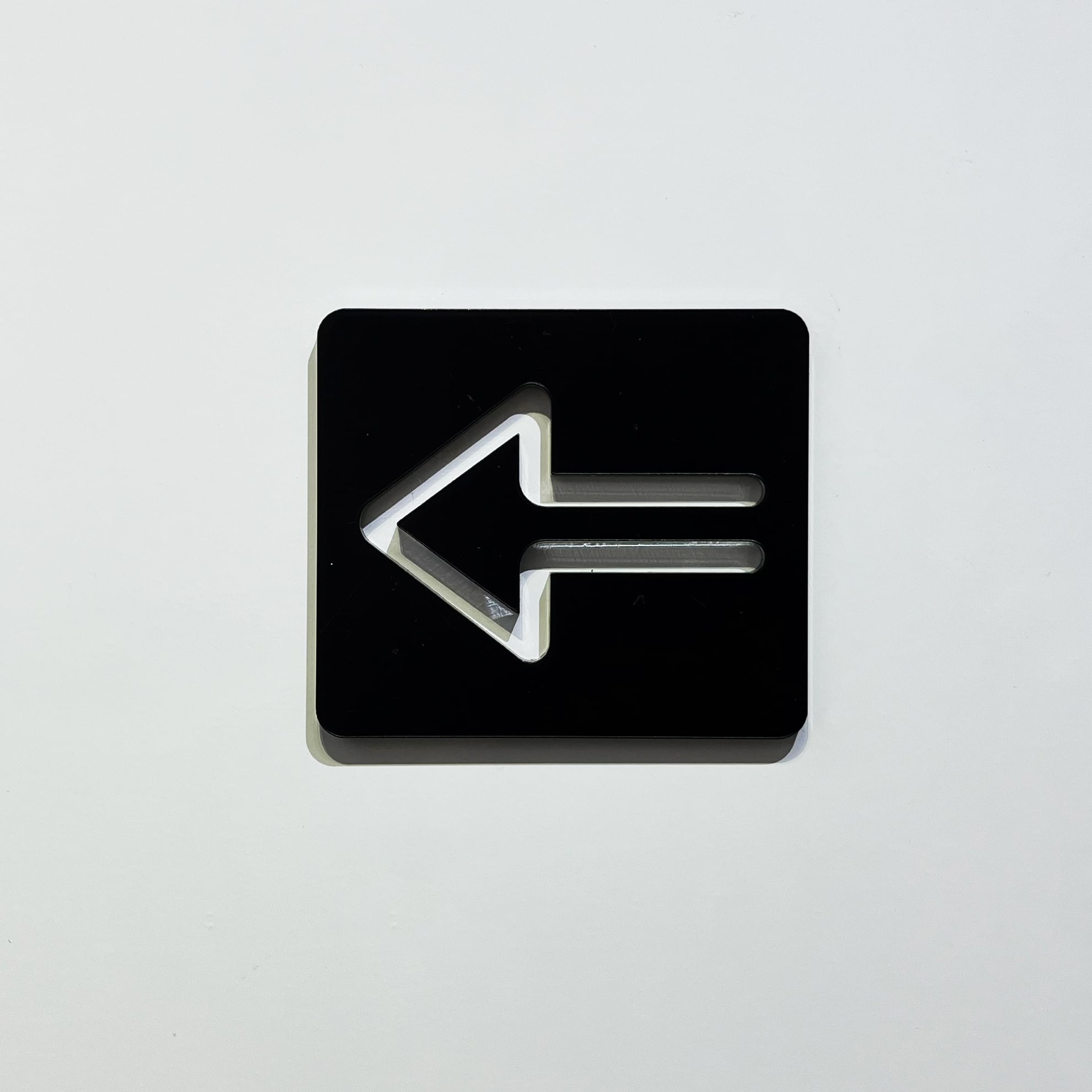 矢印ピクト 壁付けサインです。透明アクリルにシートが貼られています。