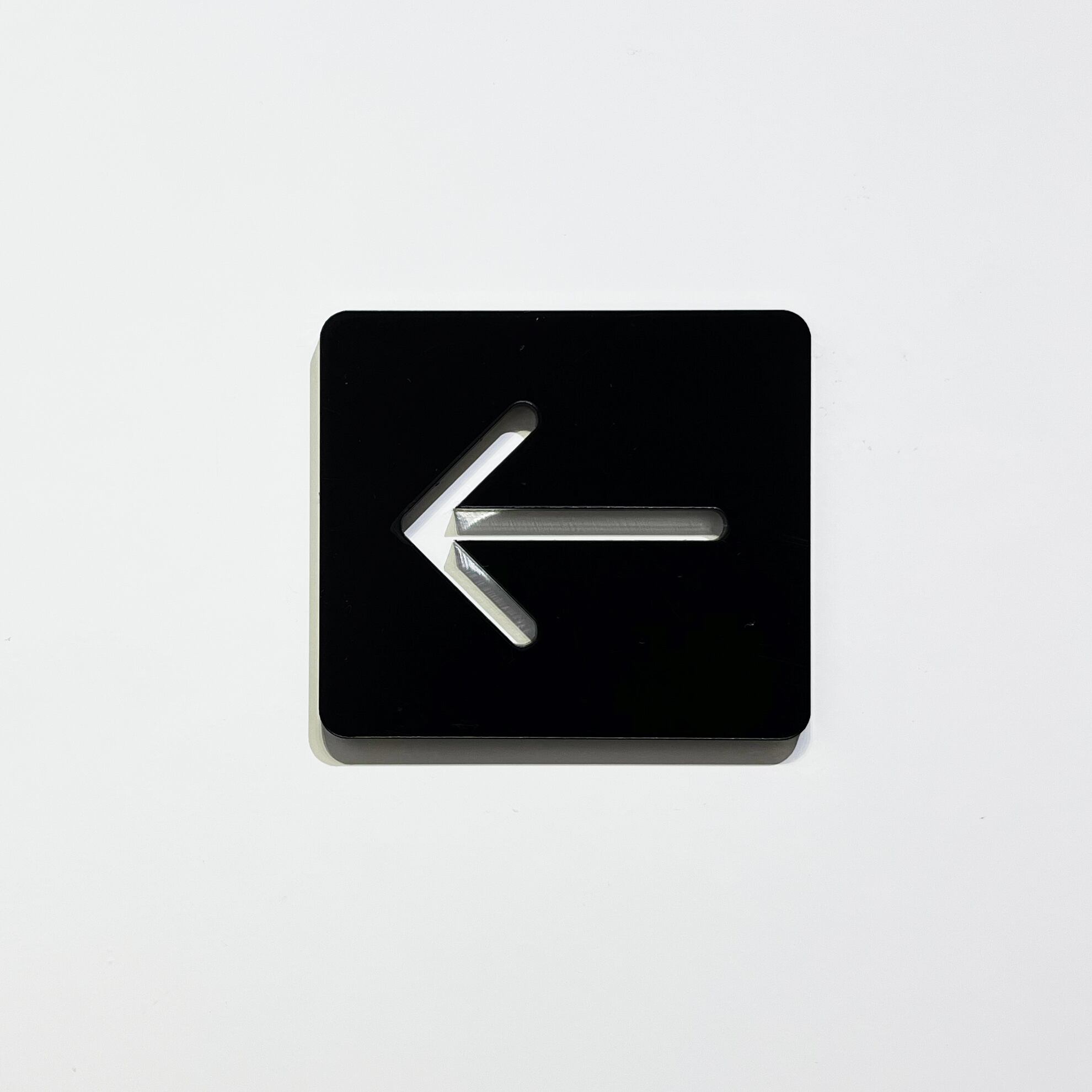矢印ピクト 壁付けサインです。透明アクリルにシートが貼られています。