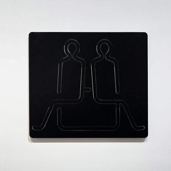 休憩室ピクト 壁付けサインです。透明アクリルにシートが貼られています。